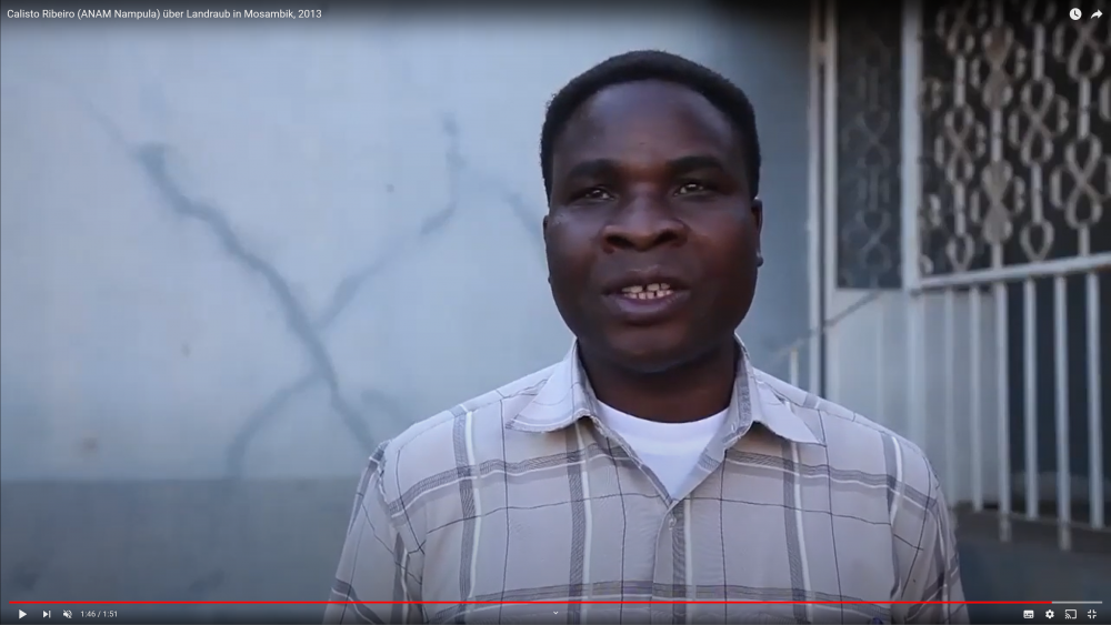 In Mosambik gibt es zahlreiche Fälle von illegalem Landraub durch die Forstindustrie. Laut Gesetz stehen die Landnutzungsrechte denjenigen zu, die dauerhaft auf dem Land leben und es bewirtschaften. Konzerne haben die Möglichkeit, mit Zustimmung der betroffenen Gemeinden bei der Regierung Nutzungslizenzen zu erwerben. Dieses Gesetz wird jedoch systematisch missachtet. Entscheidungen über die Vergabe dieser Nutzungslizenzen werden meist auf hoher politischer Ebene gefällt - ohne die lokale Bevölkerung mit einzubeziehen.